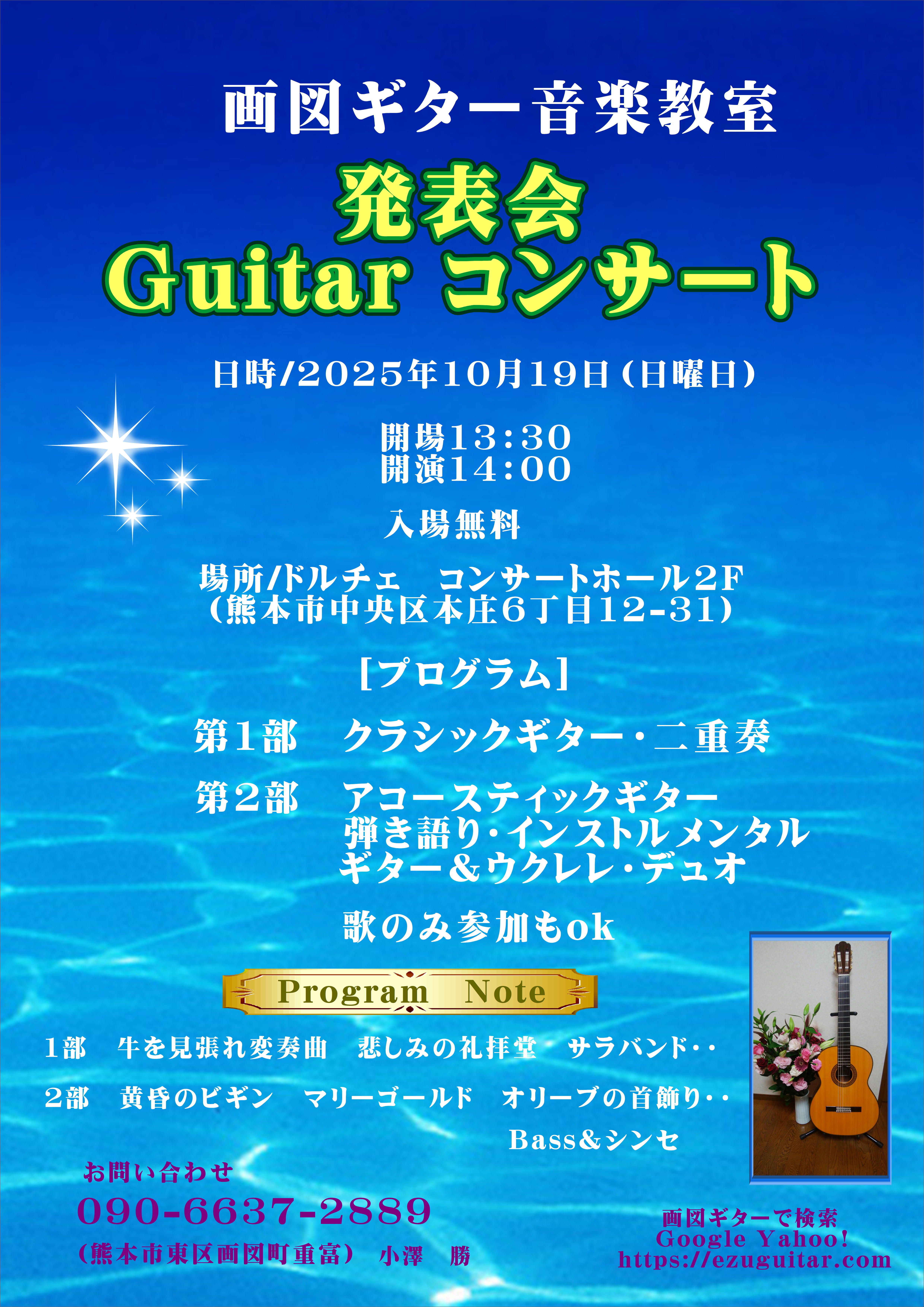 3/5 R7年 画図ギター音楽教室発表会連続開催決定 今年も開催10月吉日予定です。