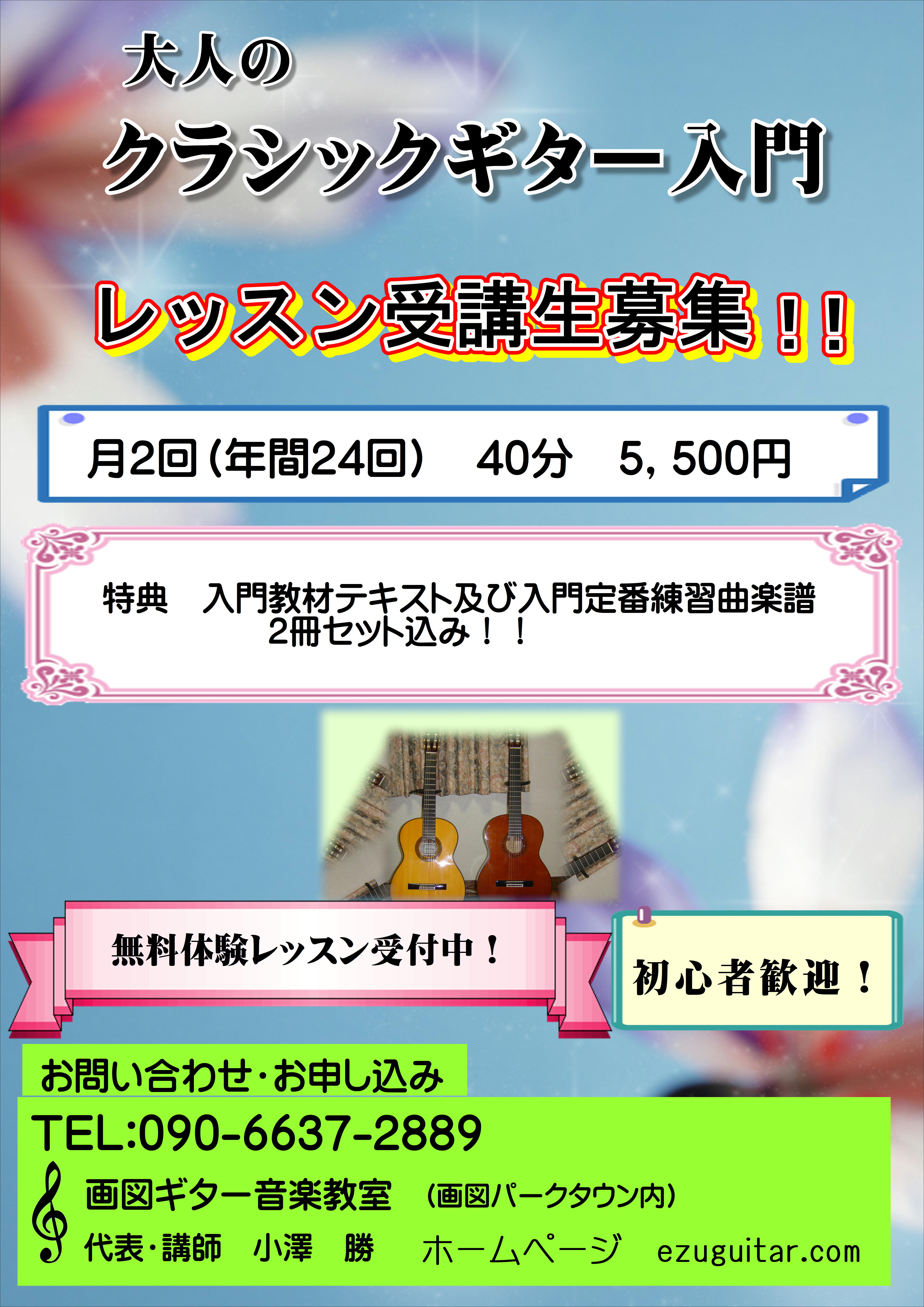 受講生募集中! ~初めてのクラシックギター~再び始めるクラシックギター~